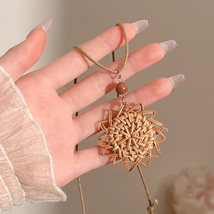 6#咖色藤编太阳花项链-吊坠直径约4.5cm项链周长约96cm(可调节)