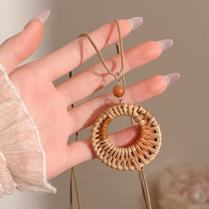 2#米色藤编圆环项链-吊坠直径约5cm项链周长约96cm(可调节)