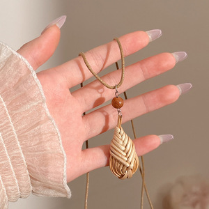 4#咖色藤编水滴项链-吊坠长约5cm项链周长约96cm(可调节)