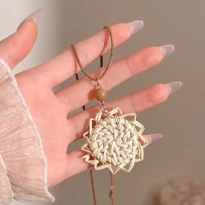3#米色藤编太阳花项链-吊坠直径约4.5cm项链周长约96cm(可调节)