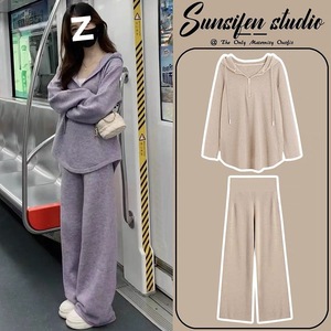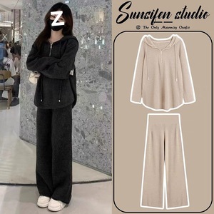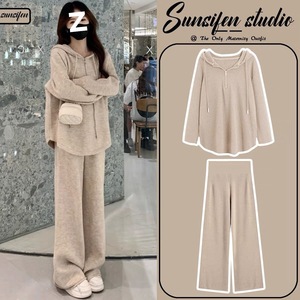 孕妇装春秋新款宽松长袖上衣韩版网红时尚休闲外出遮肚辣妈一整套