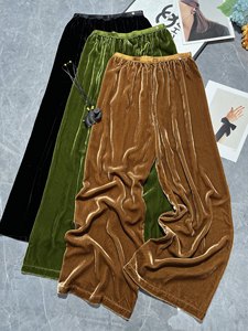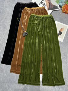 三色真丝丝绒面料高腰纯色简约日常百搭亲肤秋季新款直筒阔腿裤