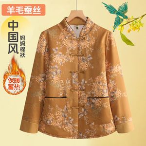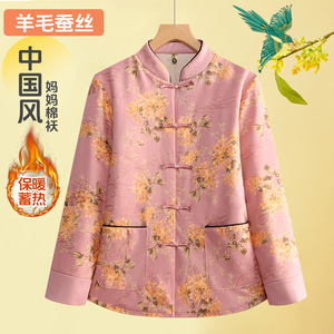 秋冬新款加棉加厚新中式国风洋气蚕丝羊毛棉袄外套 时尚百搭妈妈