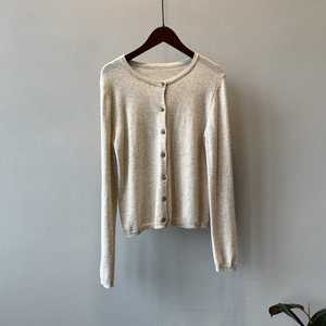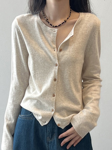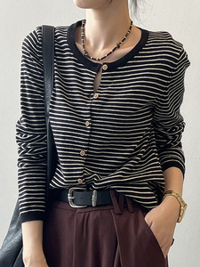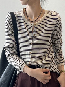 条纹针织开衫外套女春秋新款设计感小众上衣外搭薄款圆领长袖毛衣