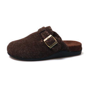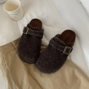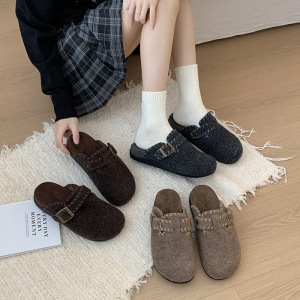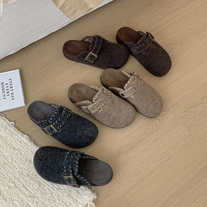 韩版复古晚晚风呢子包头半拖鞋女外穿一脚蹬厚底灰色毛毡勃肯鞋女