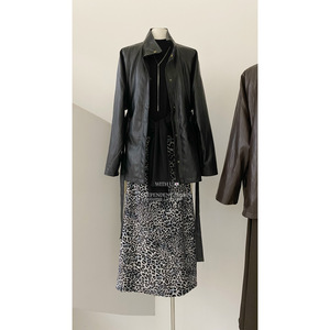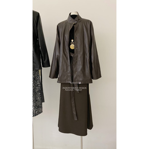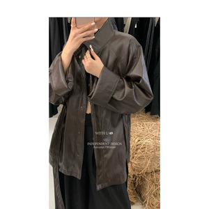 With U-秋上新气质品质蛋白皮中长款夹克外套皮衣(配腰带)1915