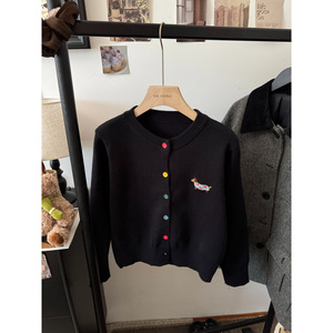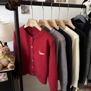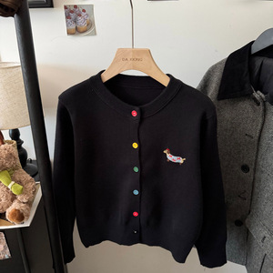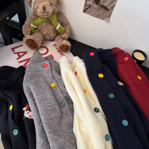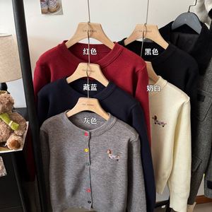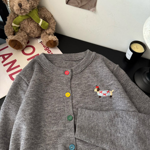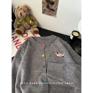 休闲温柔风长袖圆领针织开衫女新款早秋灰色毛衣宽松彩扣上衣外套