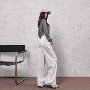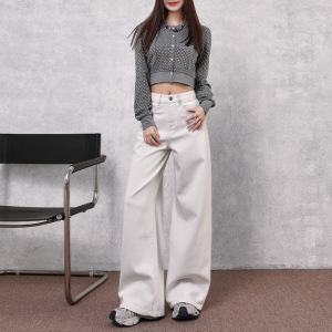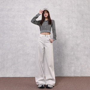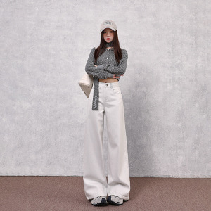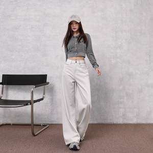 2025秋季主推款&轻奢白质感微弹超柔面料拖地阔腿牛仔裤女