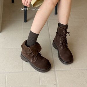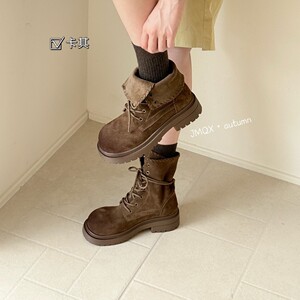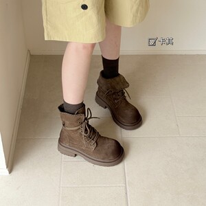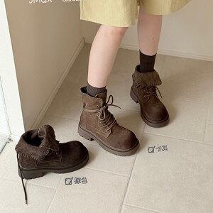 2025新款复古翻盖两穿马丁靴女英伦风厚底增高短筒机车靴百搭靴子