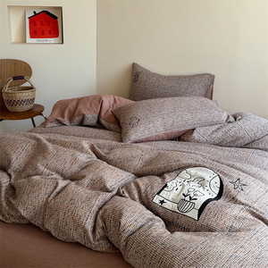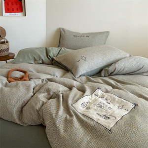 ins风60支刺绣纯棉四件套60支全棉纯棉色织大提花华夫格被套床单