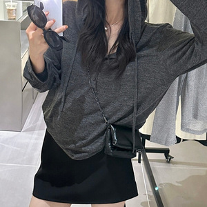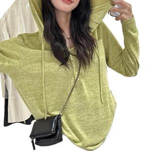 2025秋季新款韩系彩棉连帽女休闲针织半开襟长袖罩衫