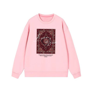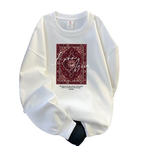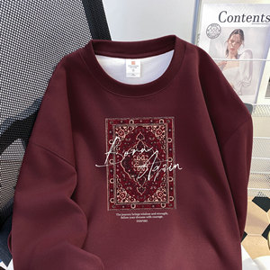 2025欧美风秋冬新款休闲百搭宽松加绒加厚时尚印花套头圆领卫衣女