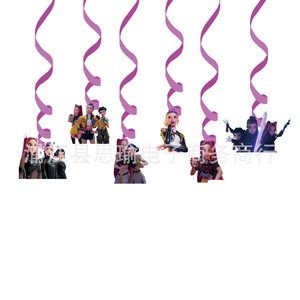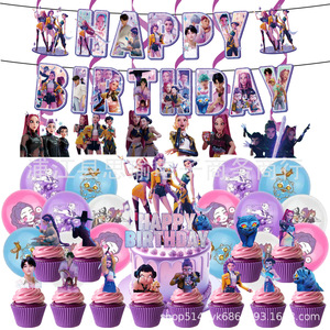 现货秒发kpop猎魔女团主题生日派对装饰生日拉旗蛋糕插排螺旋气球