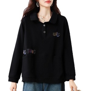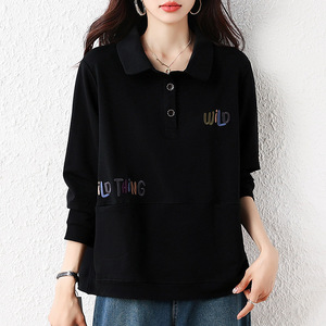 实拍秋装韩版大码遮肉字母绣花复古套头气质新款休闲卫衣女