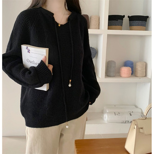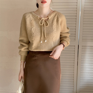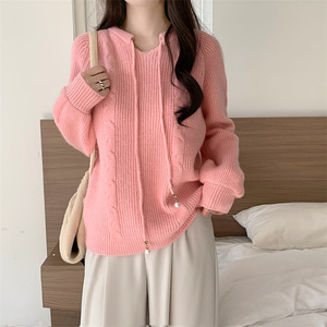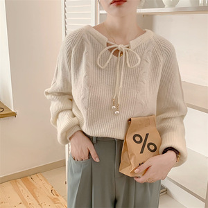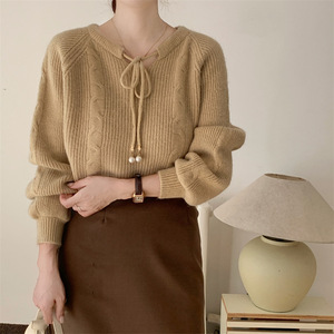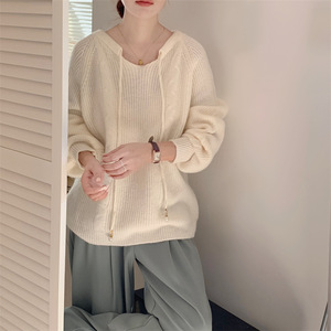 6色日韩新款系带设计感针织毛衣女长袖2025秋冬慵懒风显瘦毛衣