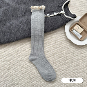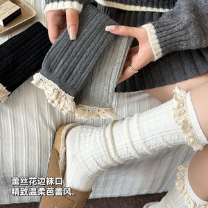 白色袜子女ins潮蕾丝花边袜口小腿袜棉质吸汗透气弹力无骨长筒袜