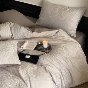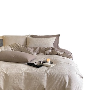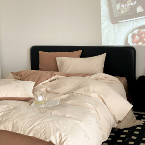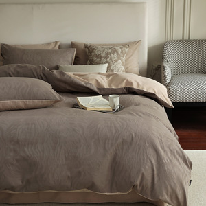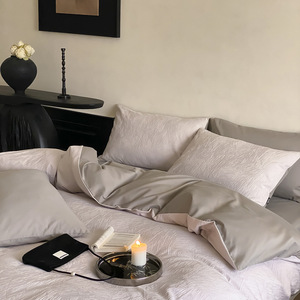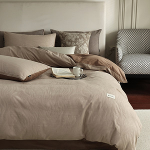 高级感~简约高支轻奢纯棉磨毛四件套全棉提花双拼被套床上用品
