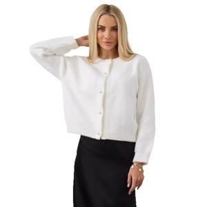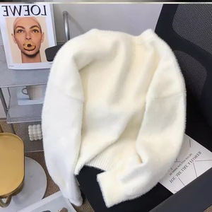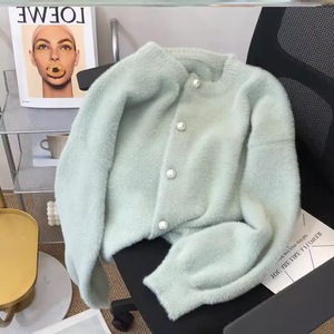 跨境专供白色水貂绒开衫女秋冬短款宽松软糯毛绒绒毛衣外套批发