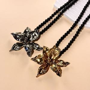 欧美跨境饰品哥特风串珠金属立体花朵项链复古感高级小众百搭项饰