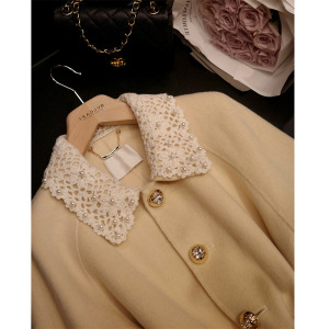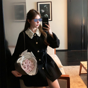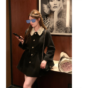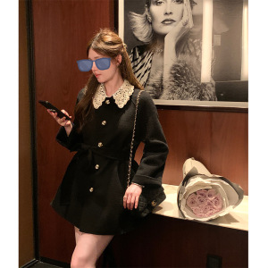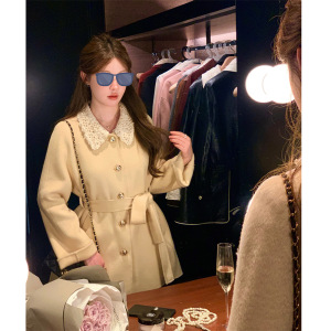 杨小卷1OO羊毛miu系千金感双面呢大衣女短款系带收腰翻领毛呢外套
