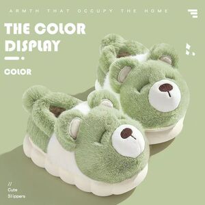 Apcans踩屎感棉拖鞋女冬季包跟外穿厚底室内保暖毛绒防滑情侣棉鞋