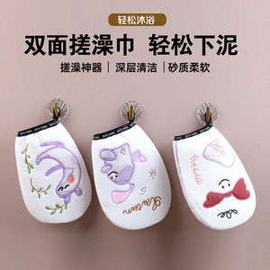 卡通刺绣搓澡巾双面搓背不痛可爱女士专用去泥加厚沐浴手套批发