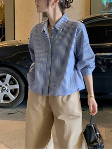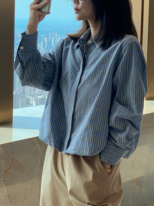 花苞衬衫2025秋季新款设计感洋气条纹百搭气质上衣