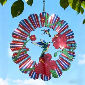 跨境旋转风铃曼陀罗3d风转可折叠花园庭院挂件户外金属工艺品挂饰
