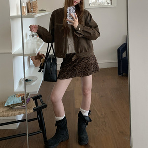 长腿豹纹 辣妹bi备秋季A字版显瘦短款豹纹半身裙