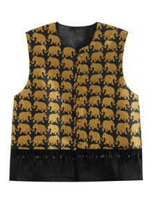 【金象】时尚流苏亮片马甲女装洋气提花新中式国风马夹高级感开衫