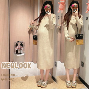 孕妇装秋冬季潮妈时尚简约休闲针织连衣裙大码宽松显瘦打底长裙子