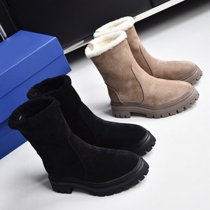 秋冬新款厚底羊毛雪地靴2025增高加厚保暖中筒靴黑色防滑