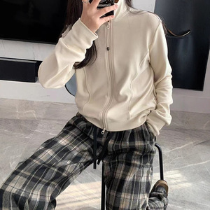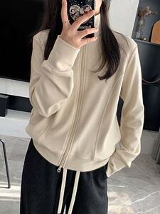 韩版德绒拉链长袖打底衫女2025新款秋冬宽松显瘦立领卫衣开衫外套