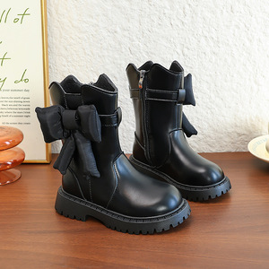 女童靴子秋冬季2025新款洋气儿童中长筒蝴蝶结高筒公主马丁皮靴