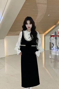 NN【月光浮星套装】丝绒假两件半裙两件套秋季新款女名媛ins小众
