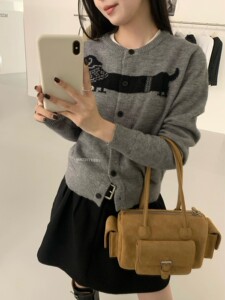MZI STUDIO 秋冬韩系腊肠狗提花氛围感纽扣小外套保暖毛衣25678