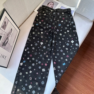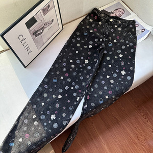 秋季新款韩版时尚休闲满印字母高腰长裤潮