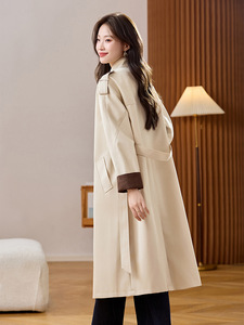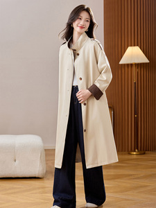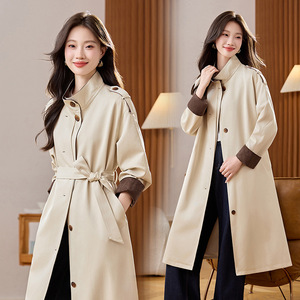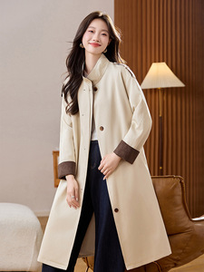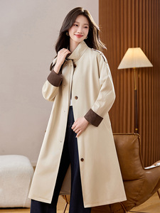 复古加长款拼接立领风衣外套女2025秋季新款高级感过膝大衣潮 WN1