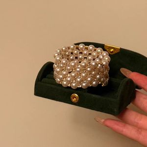 欧美新款复古仿珍珠闪钻宽版手镯小众轻奢高级感手饰手链时尚配饰