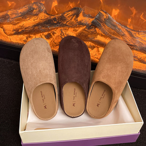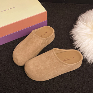 牛皮版~厚底内增高勃肯鞋女包头半拖鞋外穿秋季女鞋一脚蹬懒人鞋