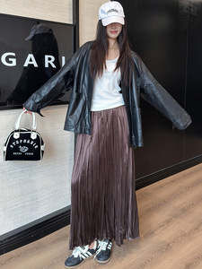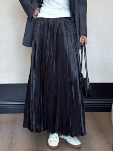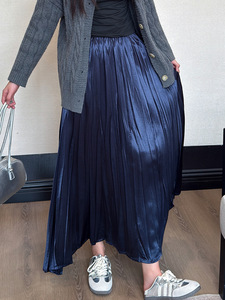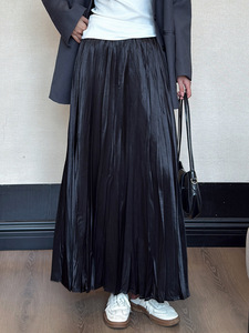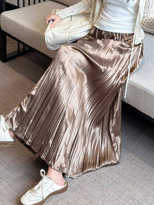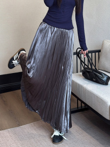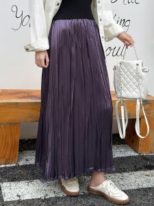 巨巨遮肉岛国新面料2025秋季珠光法式褶皱中长百褶半身裙子女长裙