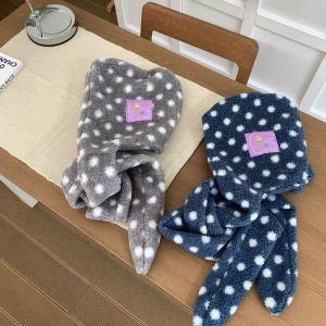 小众设计感波点羊羔毛帽子围巾一体时髦百搭冬季氛围感显脸小装饰