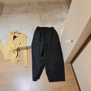 WGWE7312告白不一样的复古时髦感绿调格子遛弯休闲裤