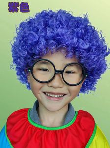 爆炸头假发小丑头套搞笑彩色假发套幼儿园表演区材料彩色短发假发