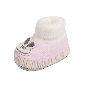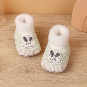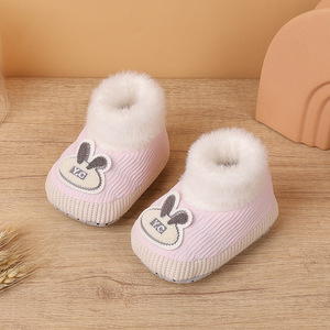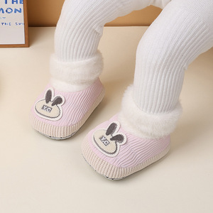 宝宝步前鞋婴儿冬款鞋宝宝绒软底防滑婴儿袜鞋卡通小兔室内学步鞋