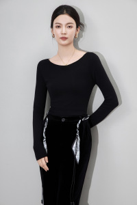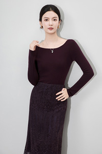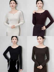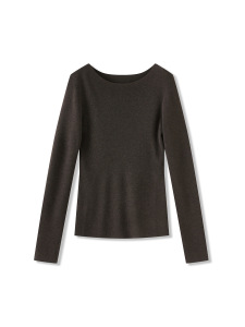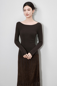 2512402-16针四平密织超细美丽诺羊毛纯色船领打底针织衫简约百搭