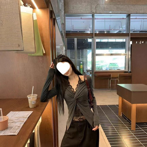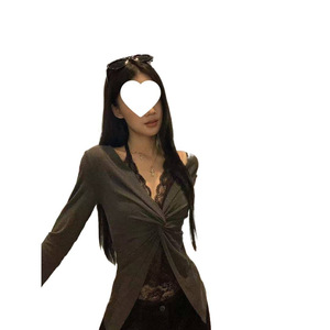 纯欲辣妹v领扭结长袖t恤女秋季感内搭打底衫别致绝美上衣