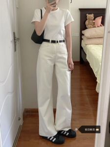 大码白色直筒牛仔裤女秋季2025年新款高腰宽松阔腿拖地裤长裤子潮