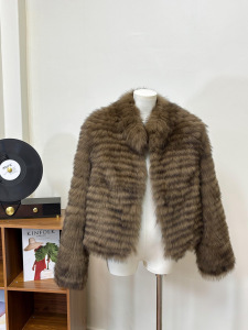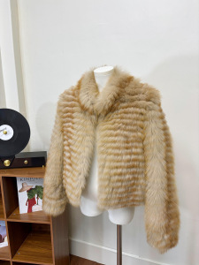 薄荷巧克力 晕染霜色狐狸毛皮草外套女短款气质立领车条款外套女