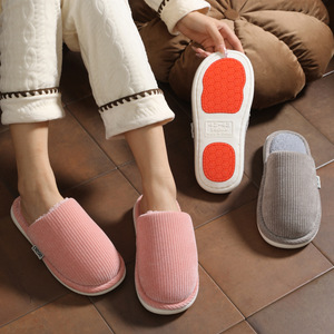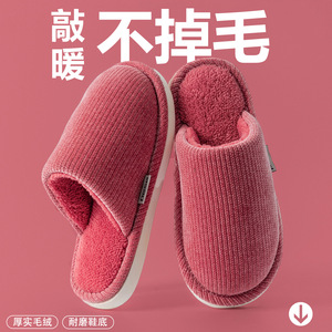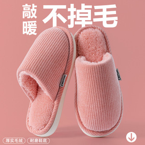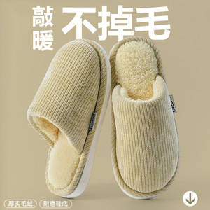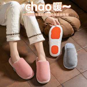 条纹防滑棉拖鞋女秋冬季2025新款静音室内家居软毛绒包头地板拖男